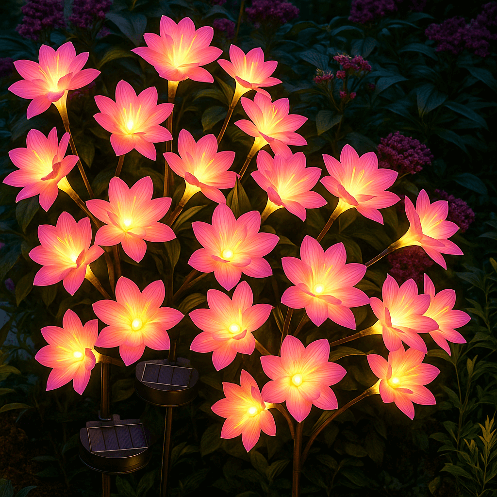 Lassen Sie Ihren Garten mit dem warmen Schein der Pink Bloom Lights erblühen! Diese wunderschönen Solarleuchten verleihen jedem Außenbereich einen Hauch von Magie.