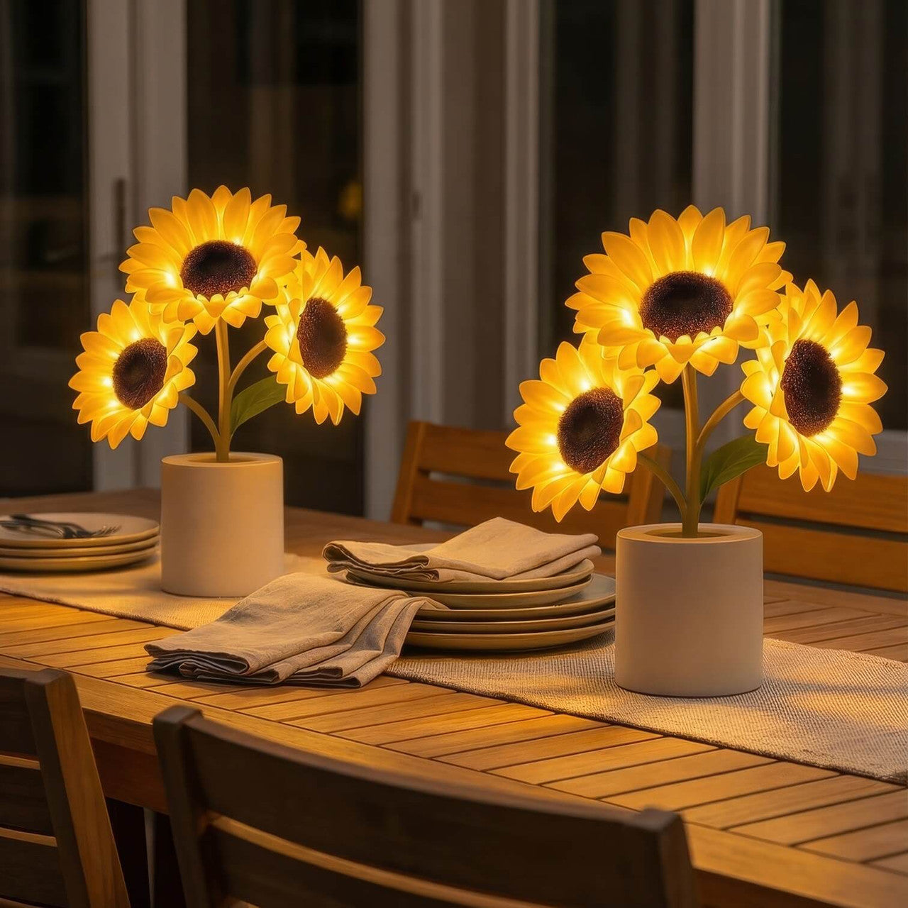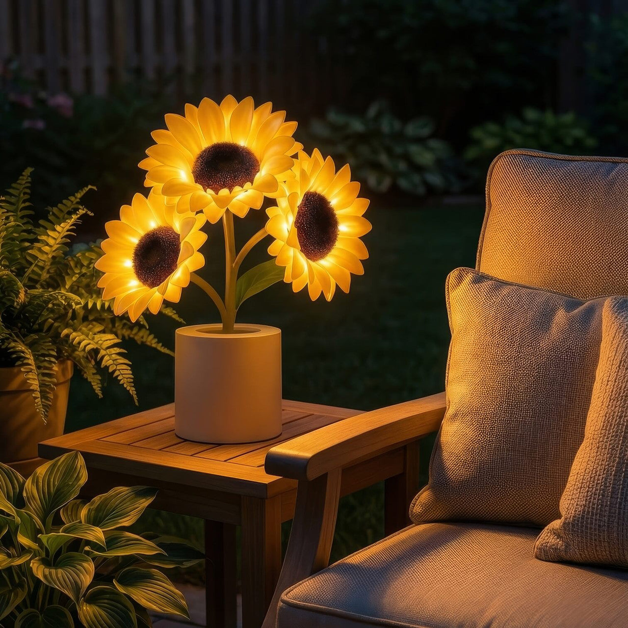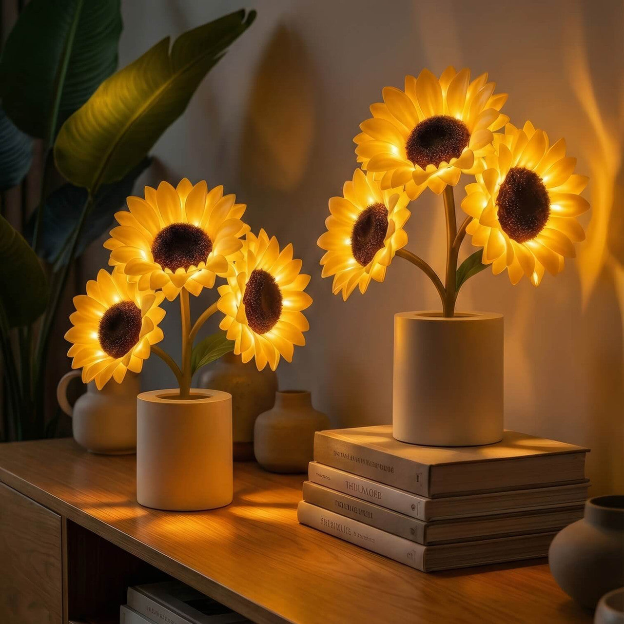 Die leuchtenden Blütenblätter und das sanfte Leuchten verleihen jedem Raum eine warme, fröhliche Atmosphäre.