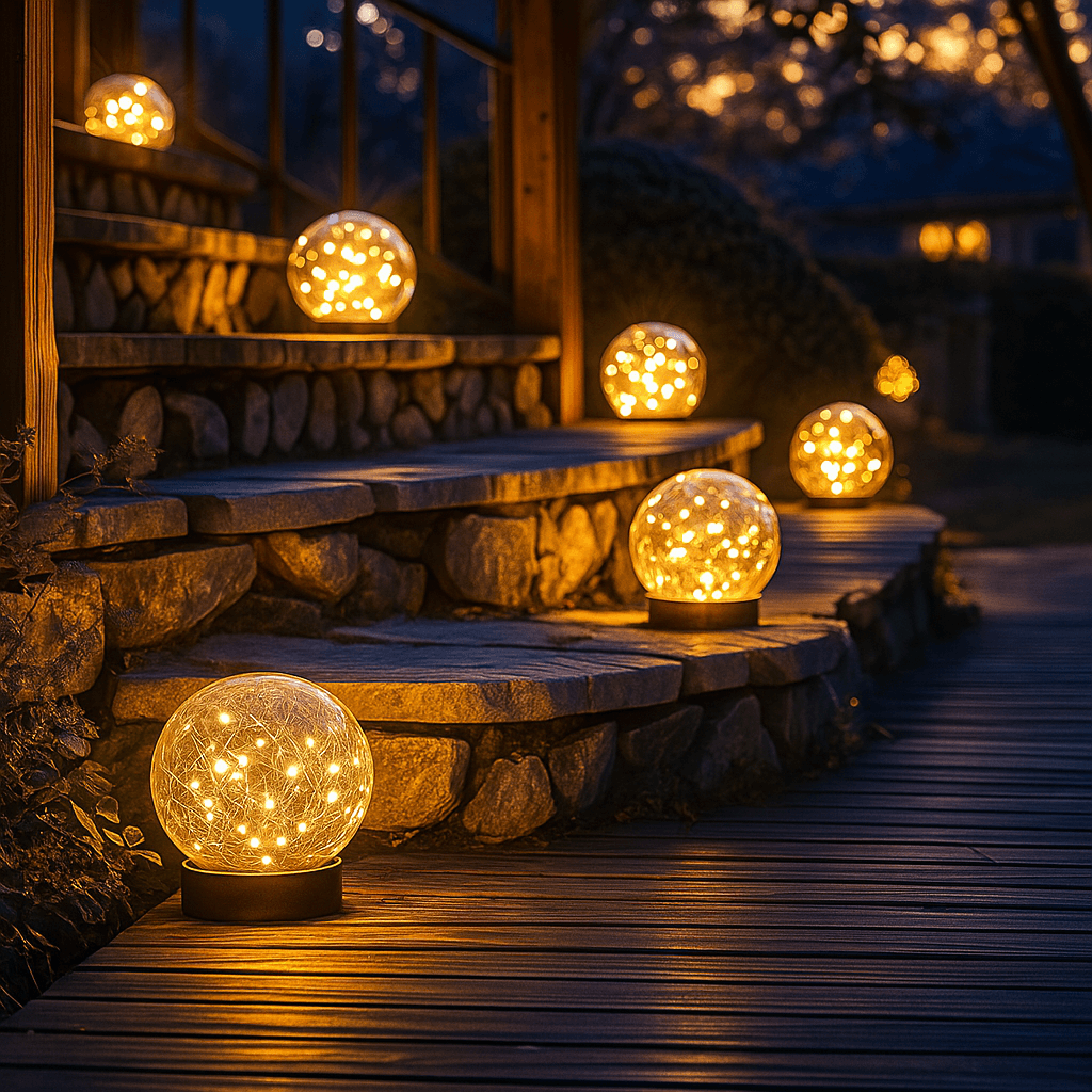 Lassen Sie Ihren Garten mit der Starlit Shining Orb erstrahlen! Diese wunderschönen Solar-LED-Lampen in Form einer Lichtkugel spenden ein warmes, stimmungsvolles Licht.