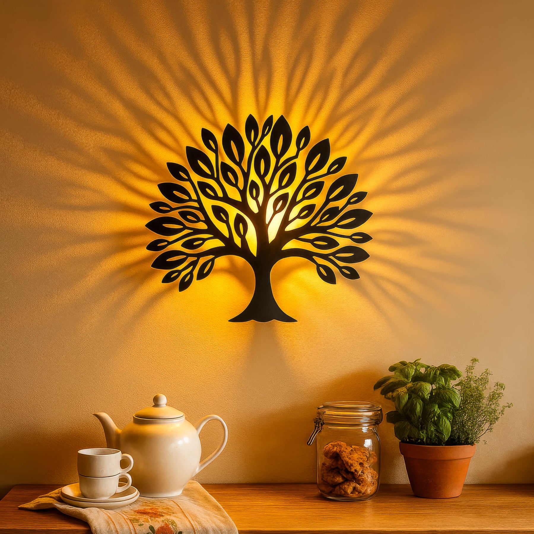 Eine stilvolle Wandleuchte in Baumform, die Ihre Wand zum Leuchten bringt – im wahrsten Sinne des Wortes.